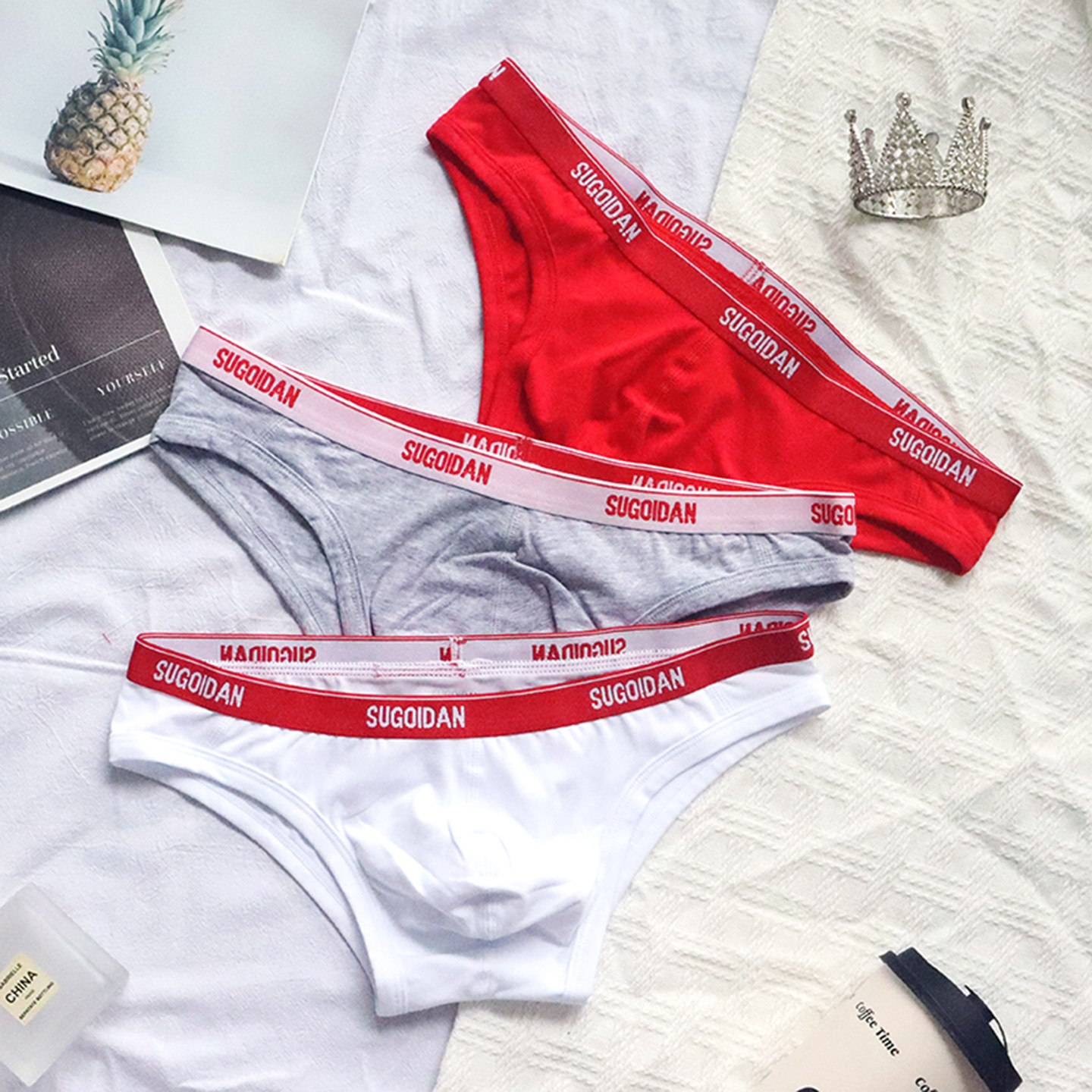 莫代尔棉男士大红色三角内裤袜子套装本命年属马年青年男生短裤头