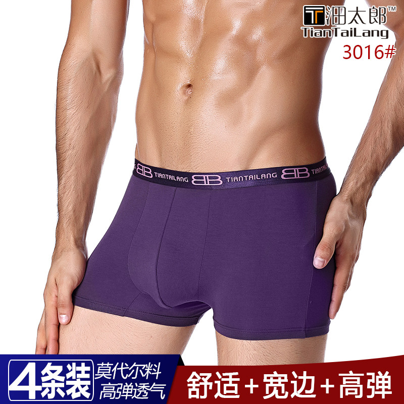 沺太郎男士内裤莫代尔高弹中腰字母腰带青年学生平角短裤四角底裤