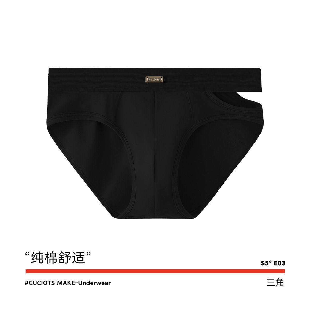 新款原创内裤男生三角裤纯棉性感侧开叉镂空男士三角内裤透气简约