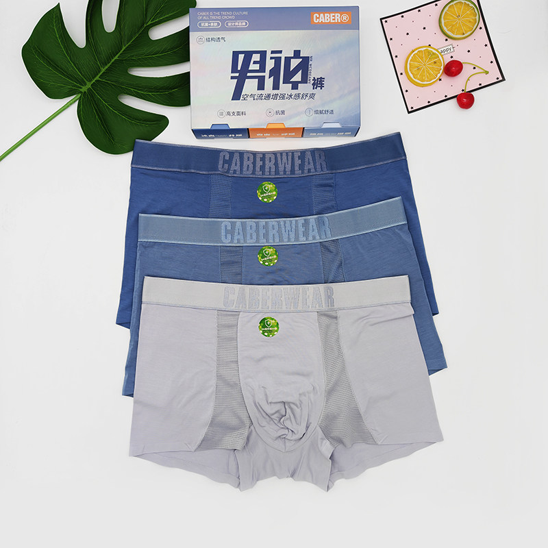 3条装 卡百利正品男士内裤莫代尔抗菌透气舒适拼网平角四角短裤夏