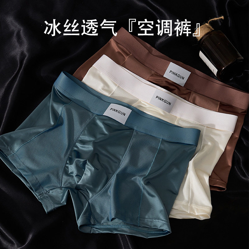 夏日凉爽冰丝男士内裤空调裤舒适透气柔软中腰平角大码男青年四角