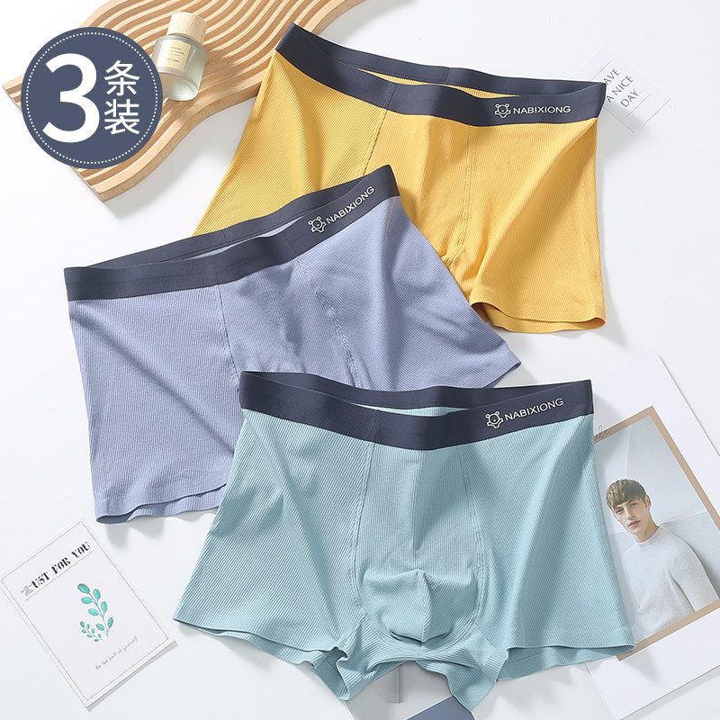 优质3条装纯棉男士内裤男款高档平角内裤潮流男生四角短裤衩