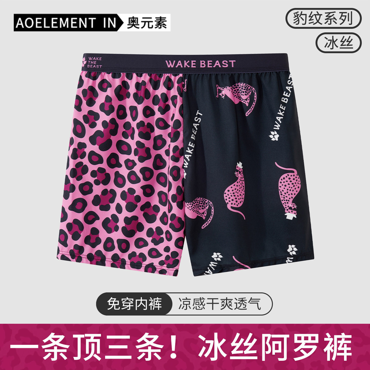 豹纹阿罗裤男士冰丝内裤男生平角裤宽松透气男款夏季薄款居家短裤