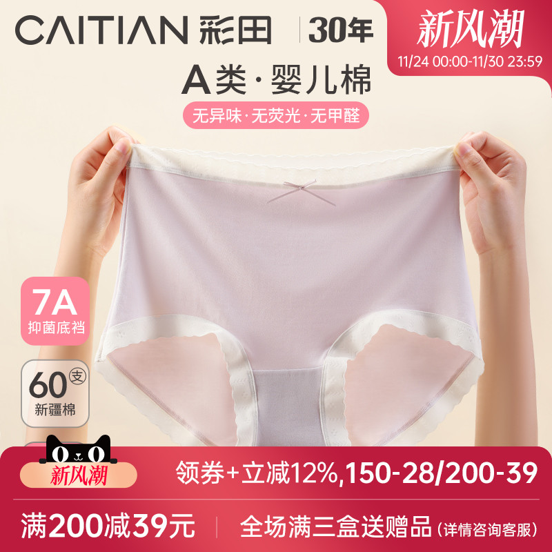 彩田秋冬新款6条装大码高腰A类棉女士内裤舒适包臀抗菌裆三角裤