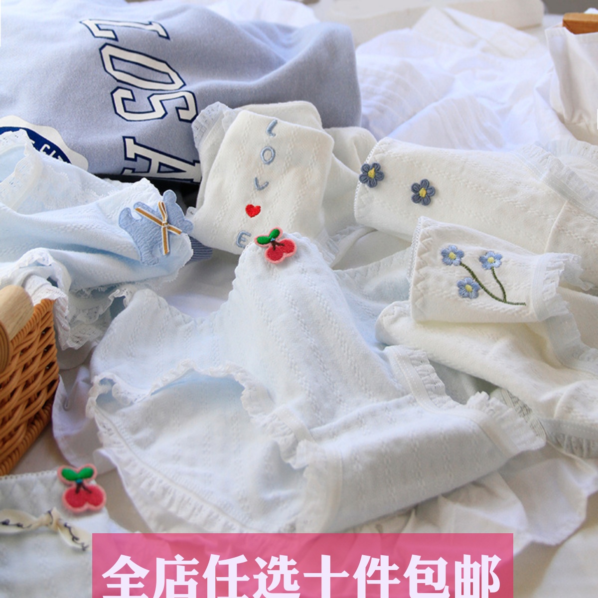全棉舒适透气爆棚可爱软萌小熊内裤女中腰木耳花边女士三角裤