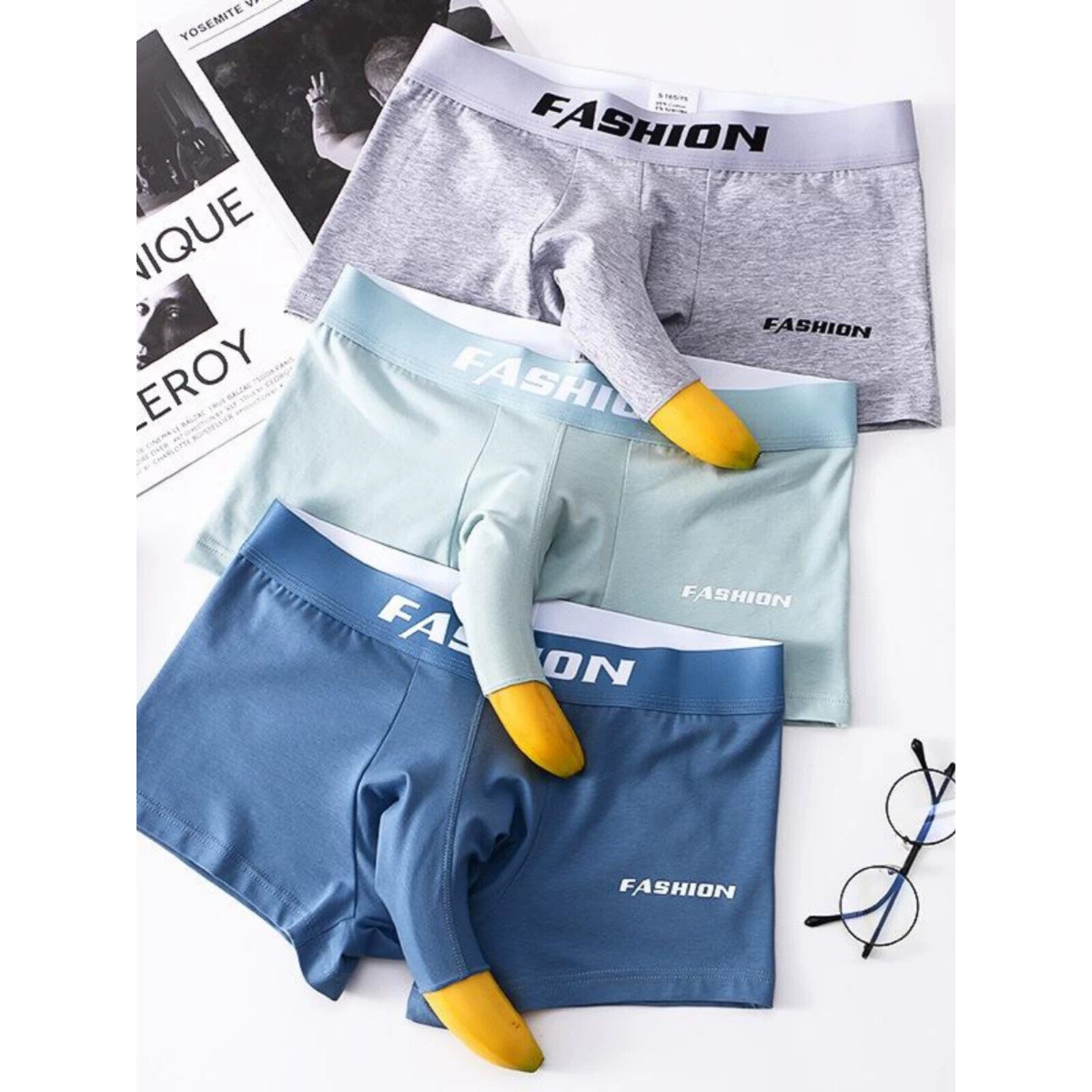 优质3条装纯棉男士内裤男款高档平角内裤潮流男生四角短裤衩