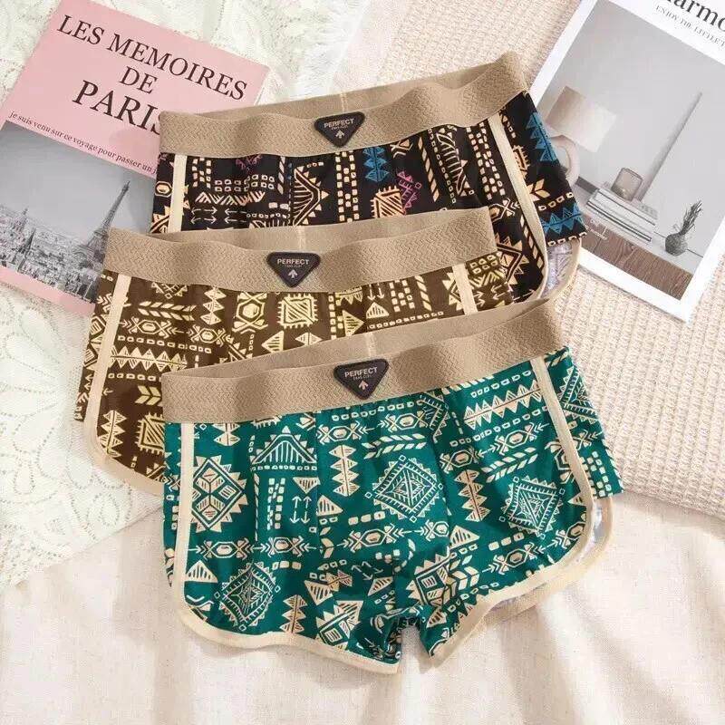 雨洛轻奢.内c衣美式复古民z族风男士内裤舒适运动四角裤宽松短裤