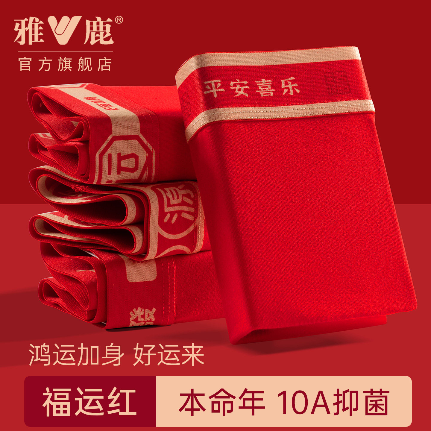雅鹿男士大红内裤抑菌透气纯棉结婚马年鸿运本命年大码高弹四角裤