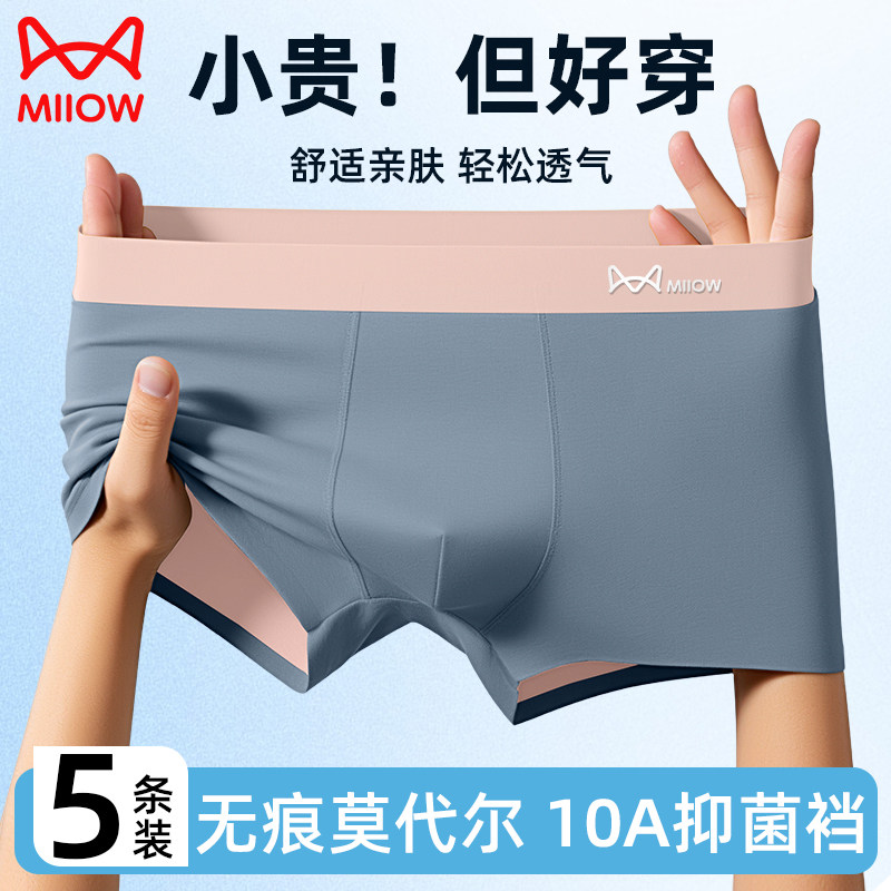 猫人男士无痕内裤10A抑菌抗菌吸湿透气顺滑清爽男生平角裤