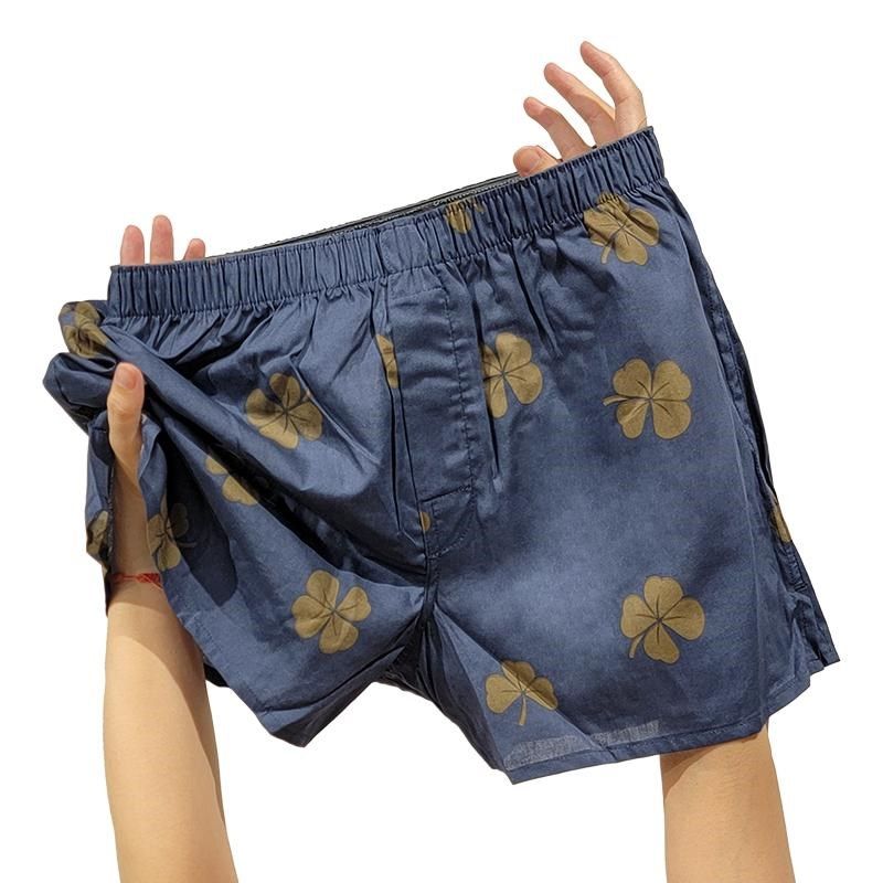 男士阿罗裤宽松内裤平角裤头四角短睡裤全棉居家薄款大码个性