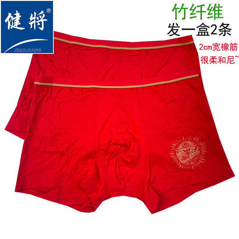 健将正品大红色本命年平角内裤竹纤维男士粘纤立体U凸福字平安红