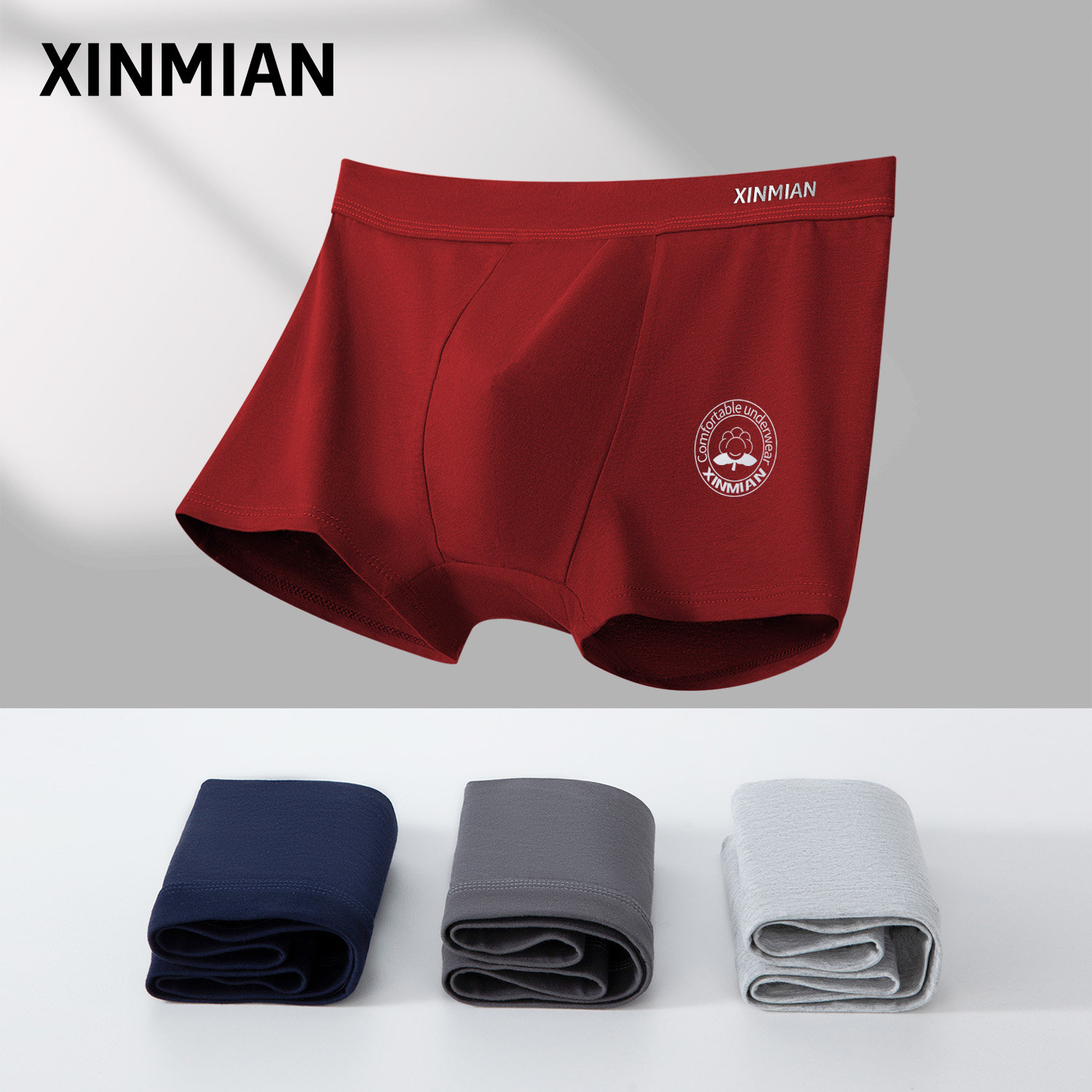 蝶安芬男士内裤男大红色本命年结婚喜庆中腰平角四角柔软内裤礼盒