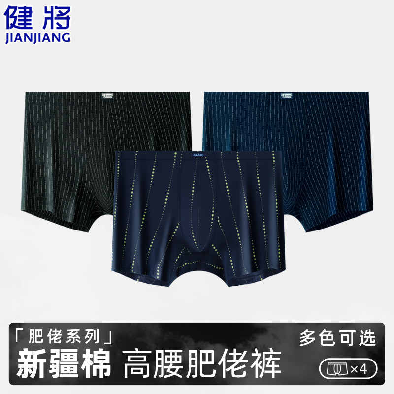 健将男士内裤纯棉加肥加大肥佬裤100%全棉短裤宽松高腰胖子平角裤