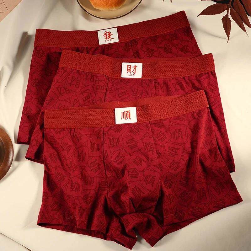 【下单立减50】吉言酒红色内裤男生本命年四角裤透气青年四角ZH2