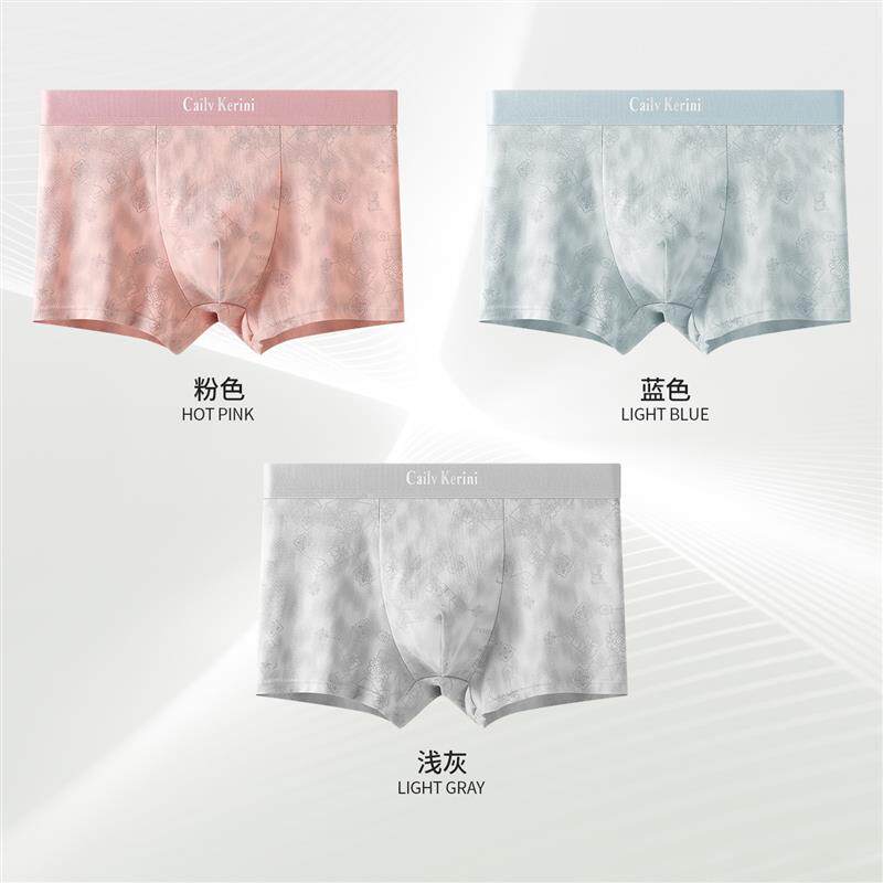 潮流舒适男士内裤纯棉中腰四角透气平角抑菌印花青少年男内裤