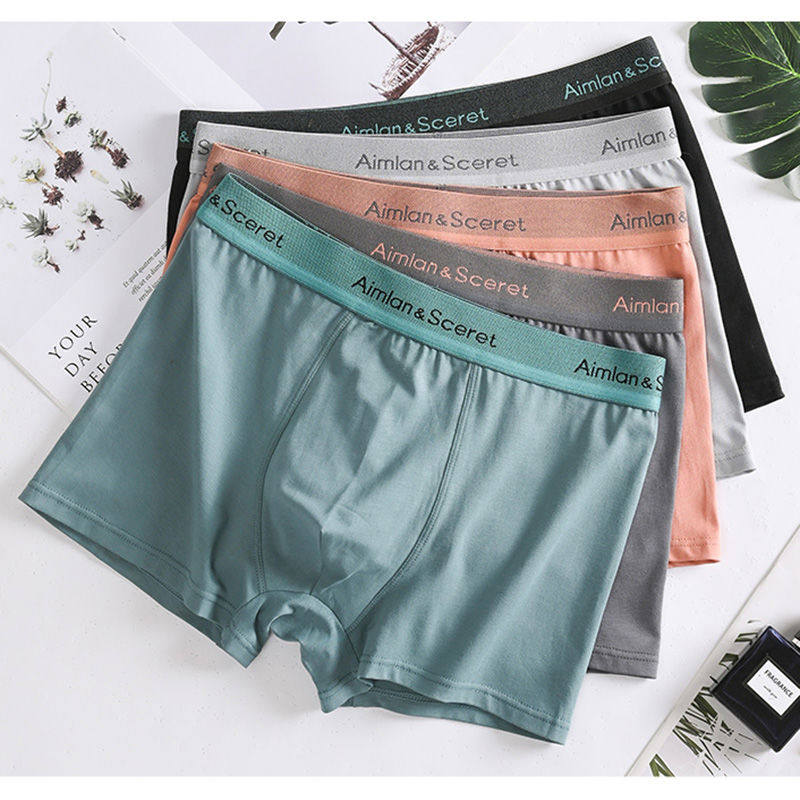 纯棉新款男士内裤简约纯色全棉平角裤运动潮流个性男生四角短裤头