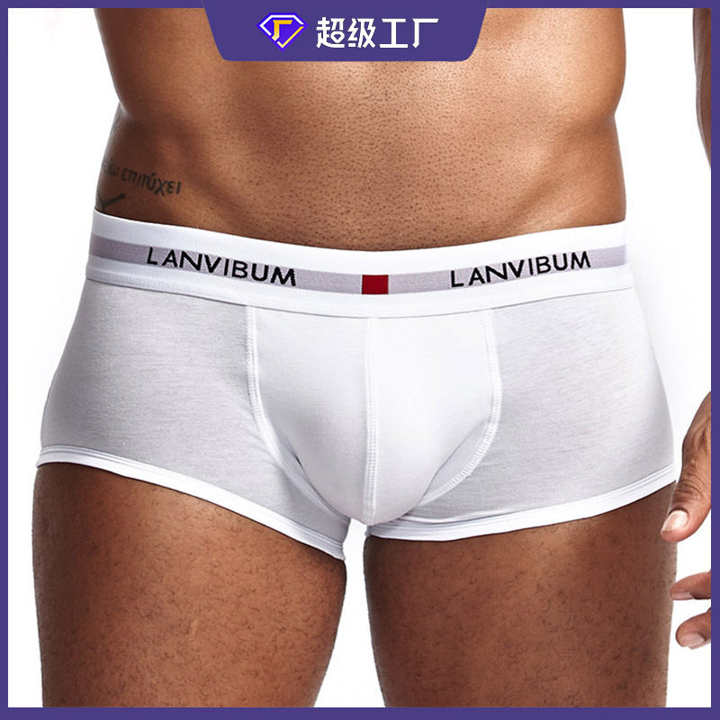 现货LANVIBUM 男士内裤青年U凸低腰棉质四角裤纯色大码男裤衩