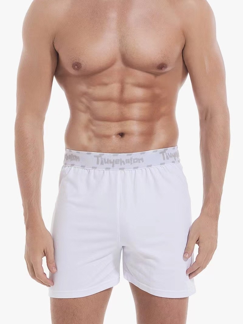 纯白色高端阿罗裤男士宽松冰丝内裤前开门睡觉穿短裤头男生大裤衩