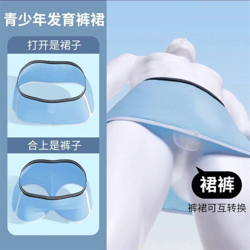 裙裤U型阿罗裤内裤男冰丝安睡裸睡无束缚青少年助发育大码平角裤