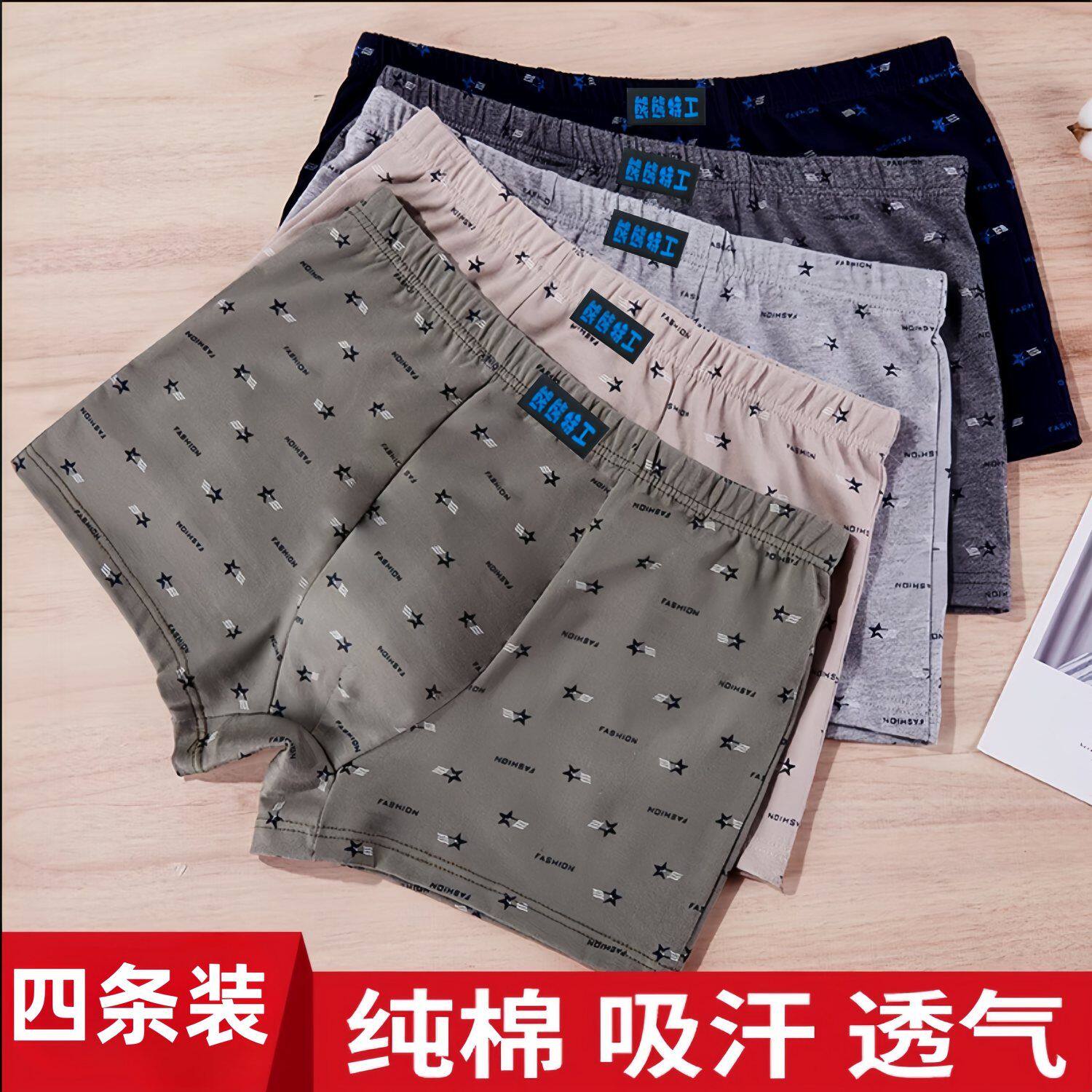 纯棉抗菌男士内裤男平角舒适透气大尺码男士内裤衩男士短裤