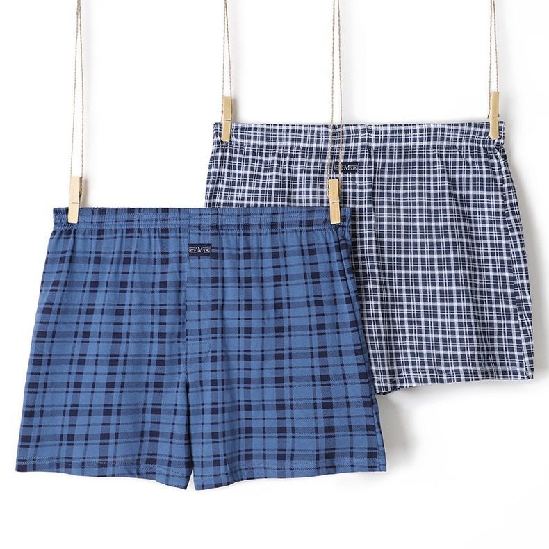 男士纯棉三分睡裤加肥内裤家居裤头格子中老年宽松舒适薄款平角裤