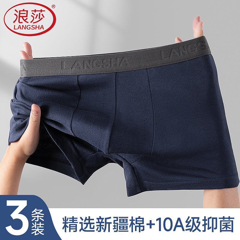 宝派内裤男士柔软大码丝滑中腰运动舒适无痕透气抗菌四角裤颗粒