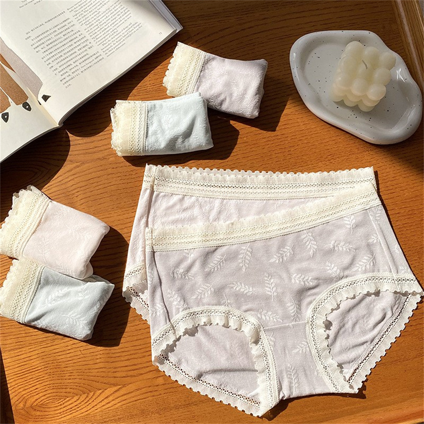 60支锦莫混纺3条装提花女士桑蚕丝真丝底裆内裤均码无尺码弹力