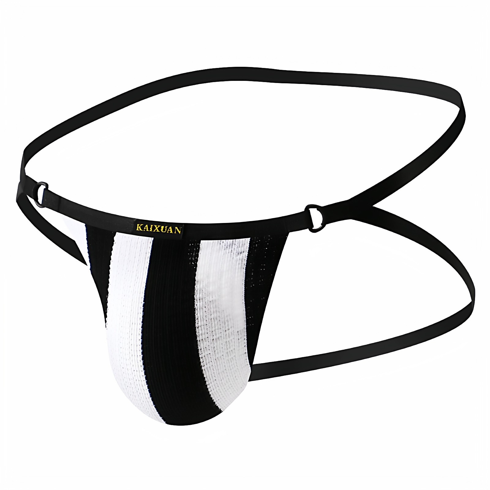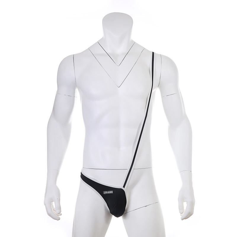 男士性感丁字裤连体式纯色低腰弹力带高弹青年个性条纹连体内裤男
