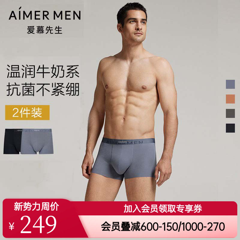 【牛奶系奶皮内裤2条装】爱慕先生正品男款无痕抗菌装腰平角内裤