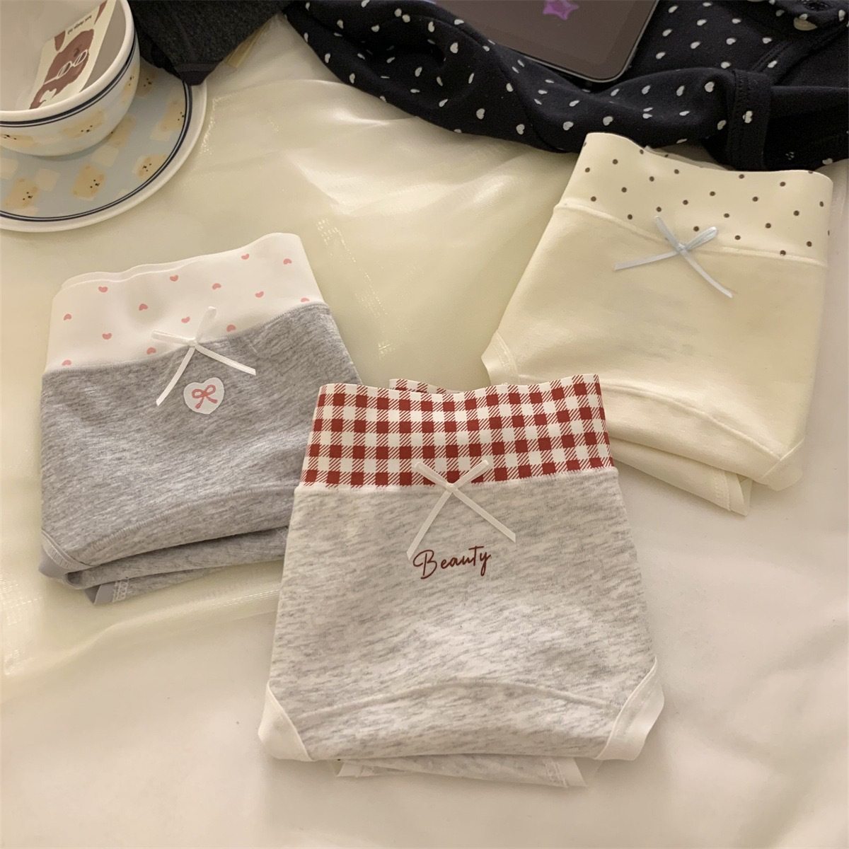 快乐才会幸运~内裤女10A加长纯棉抑菌裆拼接甜美少女中腰三角裤头