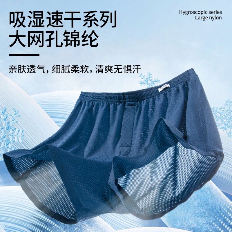 冰丝男士内裤宽松阿罗裤内裤男居家休闲运动三分中腰透气网孔睡裤