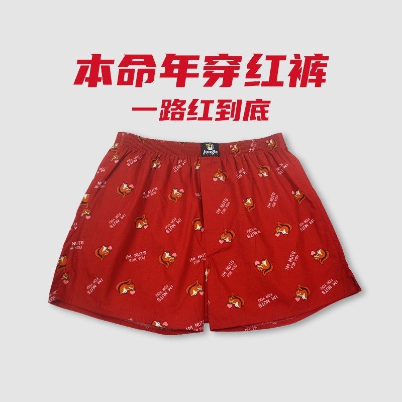 宽松男士阿罗裤本命年大红色睡裤平角裤内裤棉质大码四角裤头居家