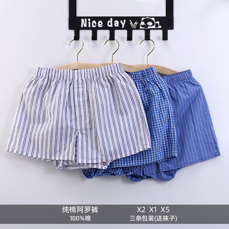 三条装阿罗裤男士平角加大码四角内裤家居睡裤裤衩棉布宽松