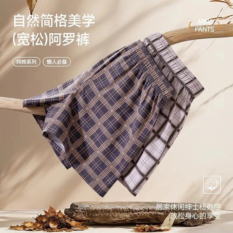 Cloud轻奢2号店男士内裤阿罗裤棉格子休闲大尺码睡裤居家四角休闲