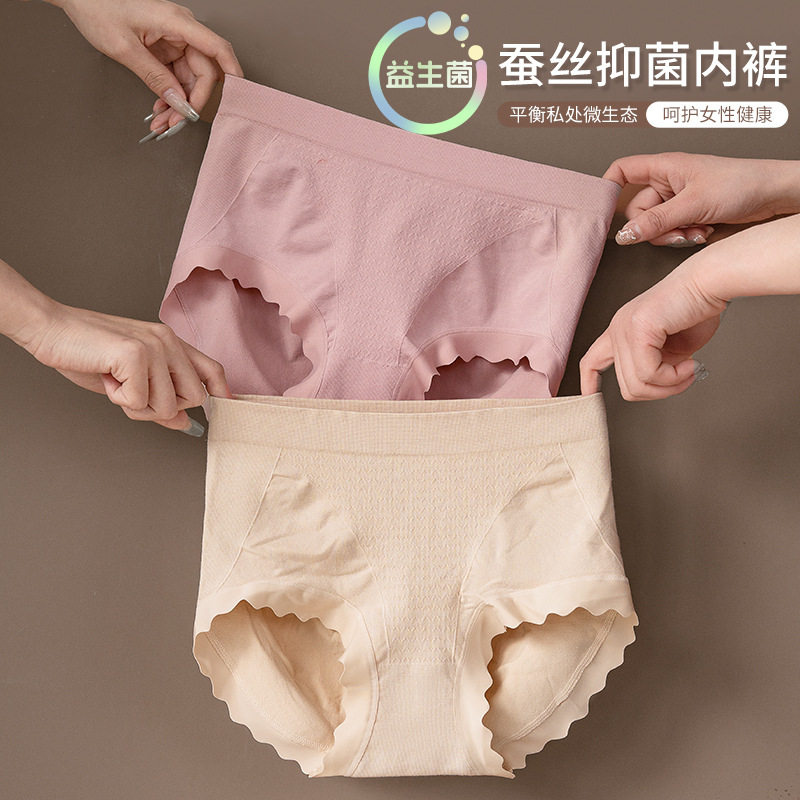 内裤女中腰大码无缝提臀收腹桑蚕丝养护温变10a裆三角裤
