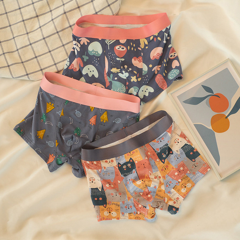男士内裤个性印花纯棉内裤男平角裤青年男生内裤S四角裤透气男薄