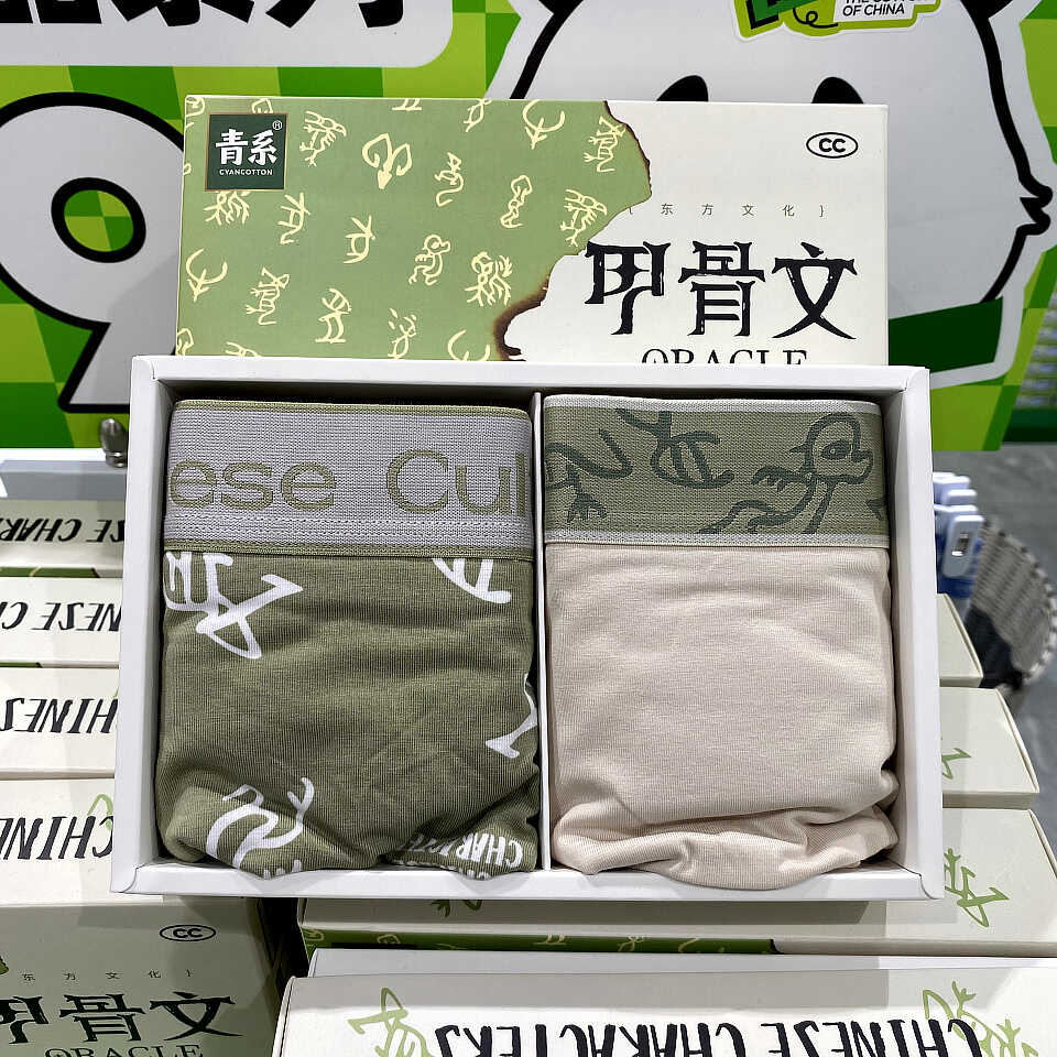 青系内裤男中腰平角裤甲骨文系列纯棉内裆无痕男士潮短裤两条盒装