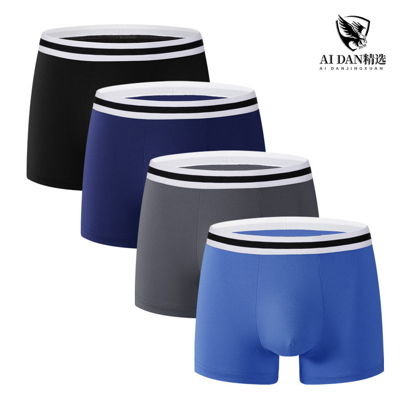 内观Slogan男士内裤丝绒奢华四角h裤u抑菌四角裤四条装