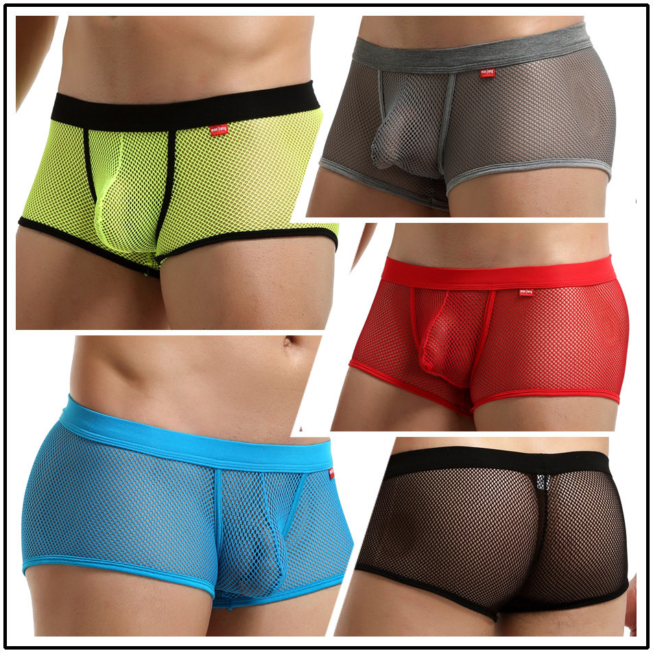 热销外贸跨境新款男士纯色内裤U凸大网眼囊袋透气贴身平角2010