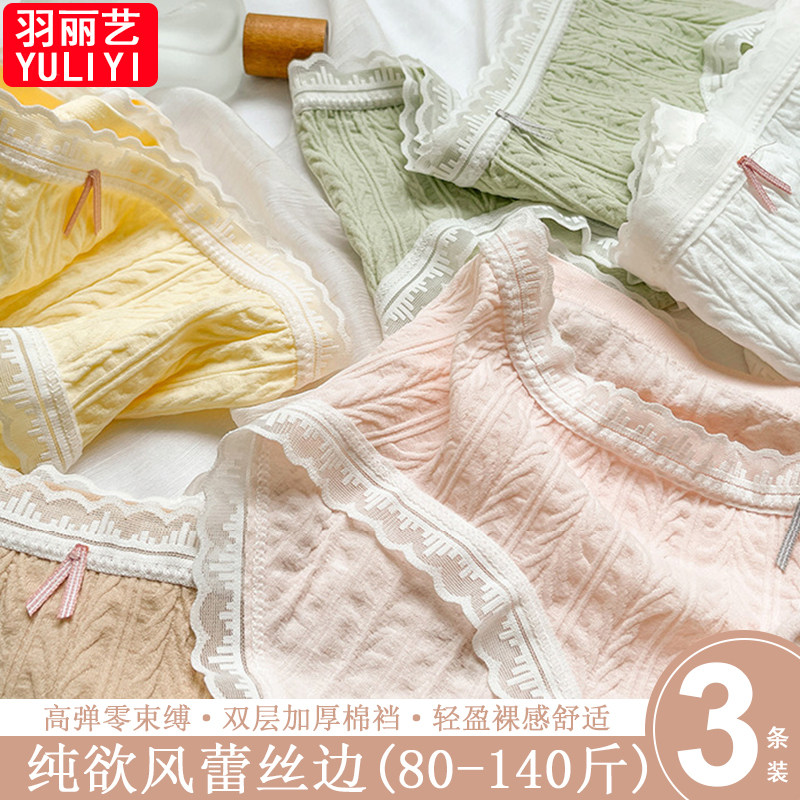 少女奶油风中腰内裤日系轻薄款裸感舒适亲肤透气性感蕾丝边三角裤