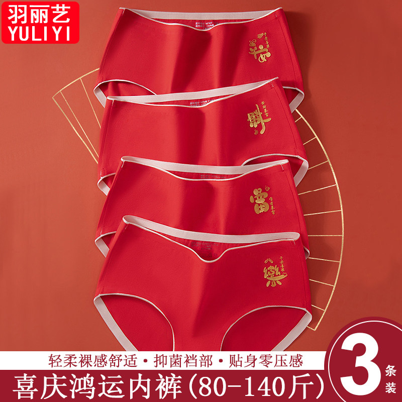中国红柔软透气女士内裤鸿运本命年舒适立体包臀不夹臀女士三角裤