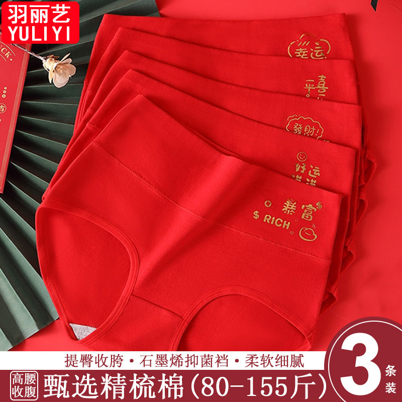 甄选精梳棉柔软细腻云感女士内裤本命年奢华红纯棉高腰收腹三角裤