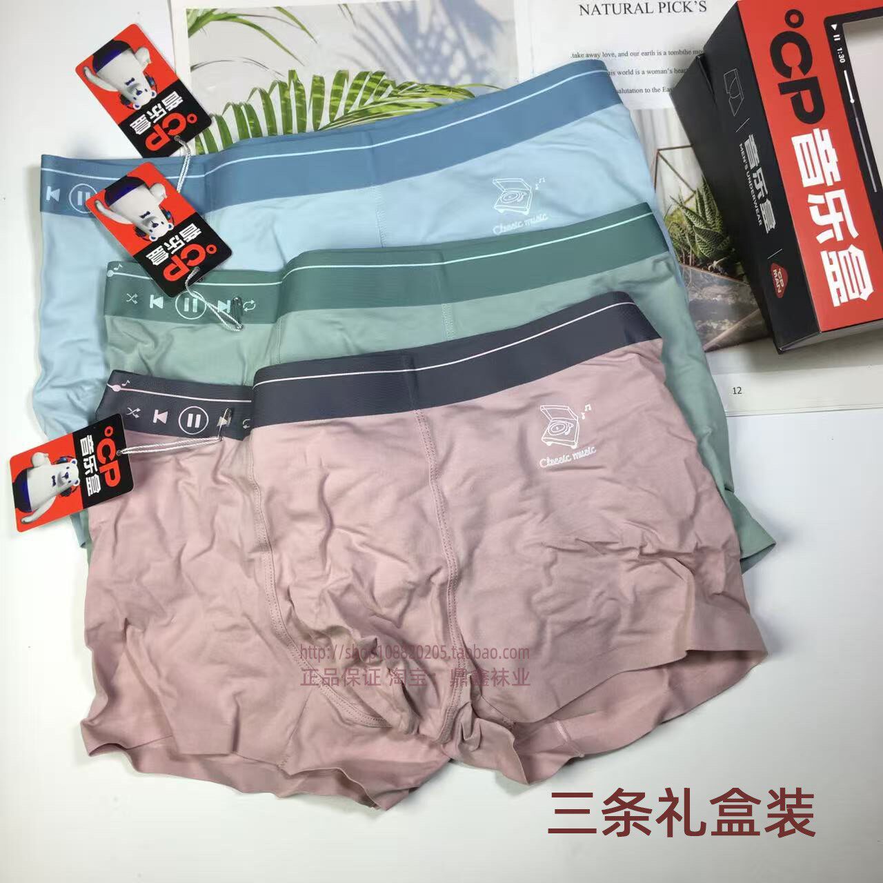 3条盒装CP音乐盒男士纯棉蚕丝抗菌裆平角内裤0感无痕高弹抑菌短裤