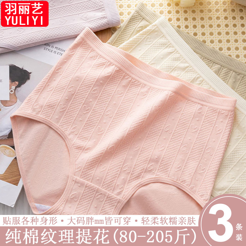 大码内裤女纯棉菌胖MM200斤中高腰全棉裆透气微收腹三角裤女生