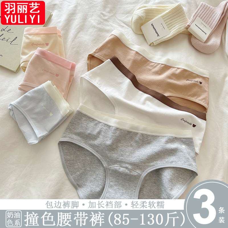 四季可穿中腰纯棉撞色女士内裤轻柔舒适透气加长裆抑菌三角裤女