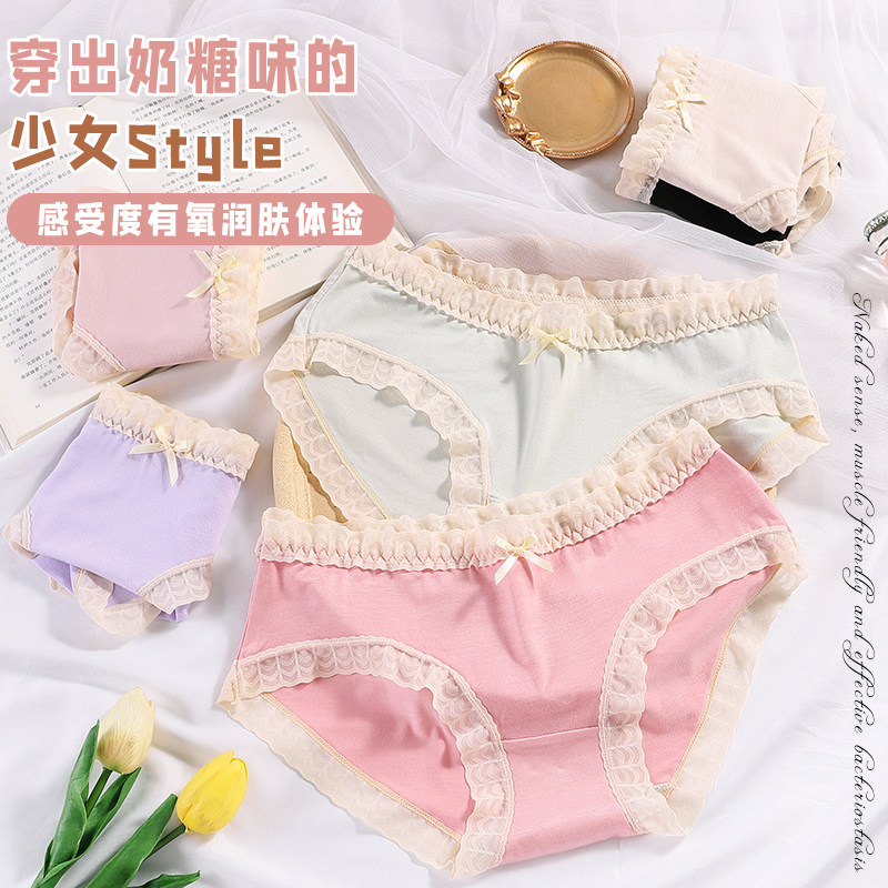 中腰甜美纯棉内裤女莫代尔舒适亲肤无痕少女风蕾丝花边女士三角裤
