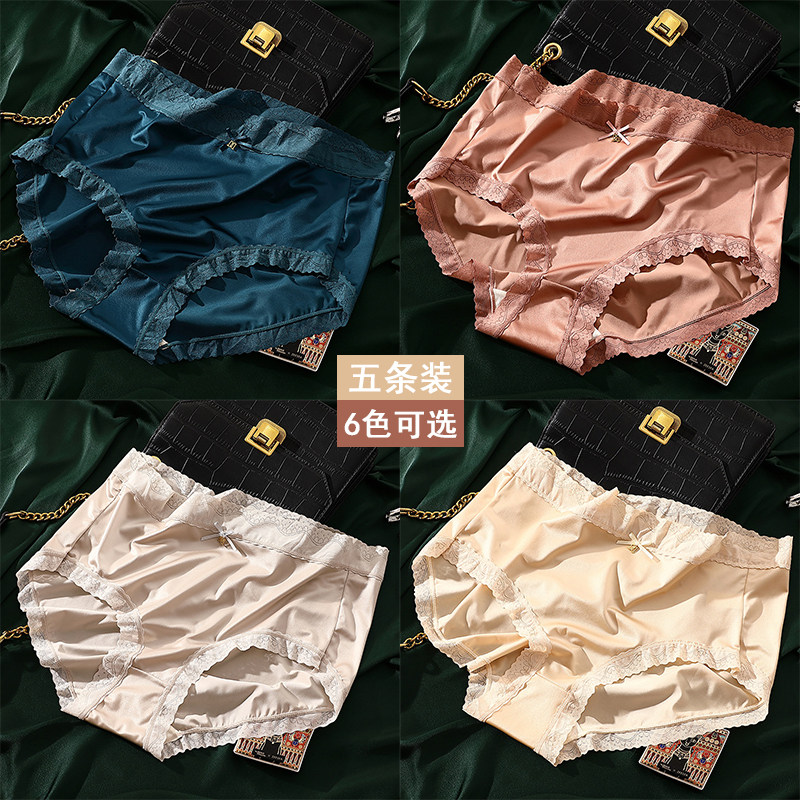 法式高奢缎面蕾丝大码内裤女性感蝴蝶结点缀三角裤女士胖mm230斤
