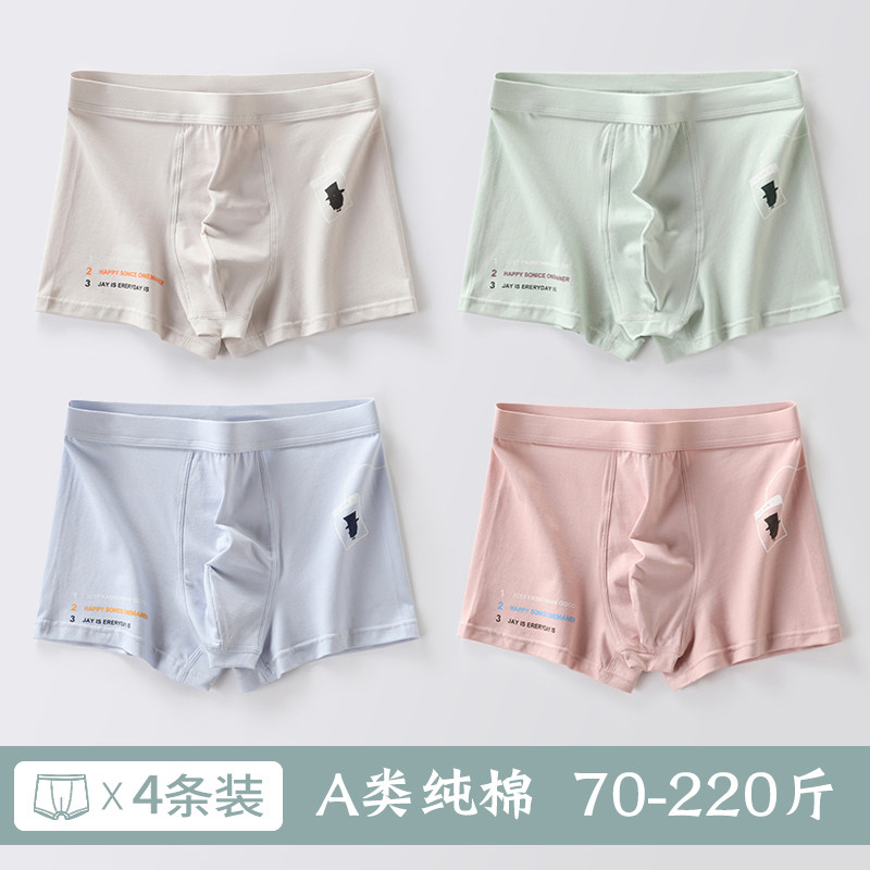 青少年发育期内裤男生纯棉平角裤全棉四角短裤中学生胖加肥加大码