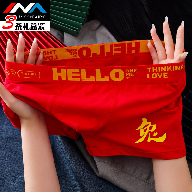 纯棉底裤男士内裤男款兔年平角裤男生红色裤衩男式全棉四角短裤头