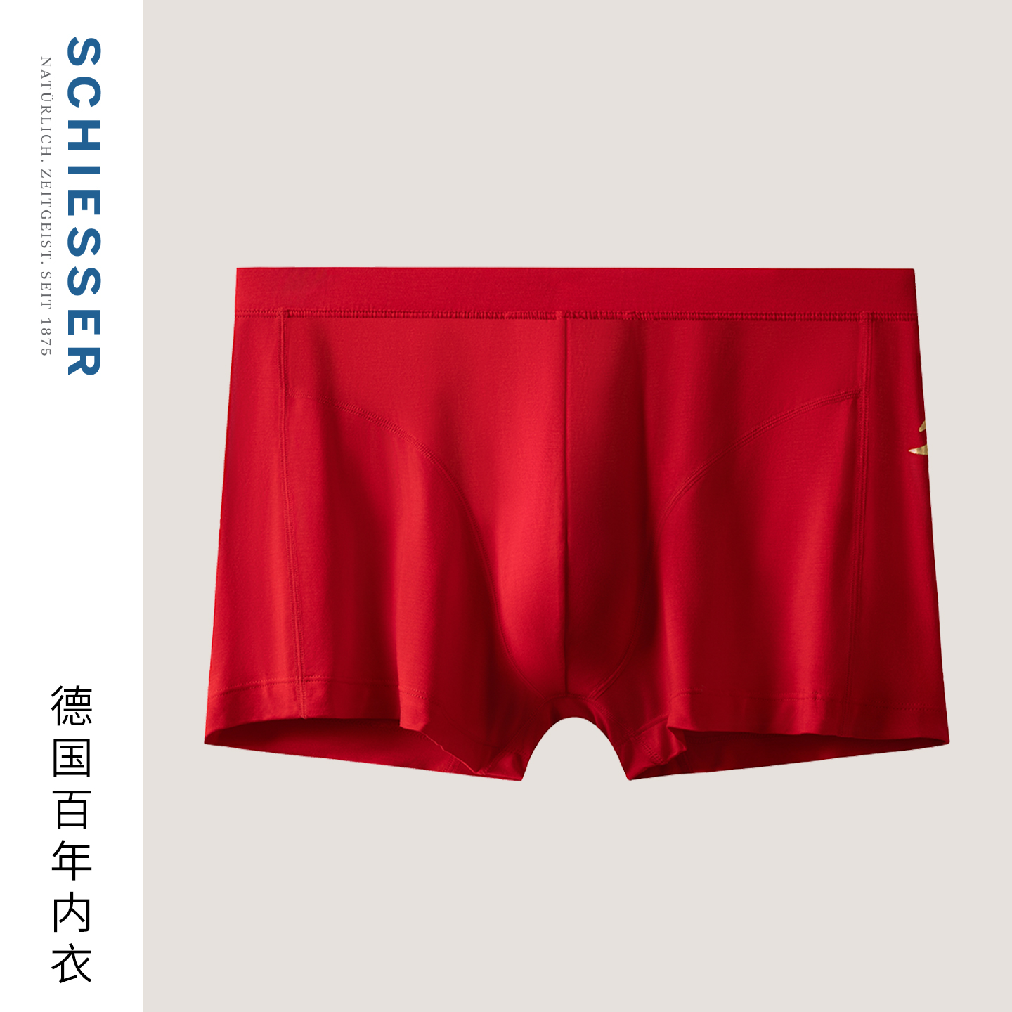 SCHIESSER舒雅25年秋冬新品男士莫代尔鸿运红品中腰加大码内裤